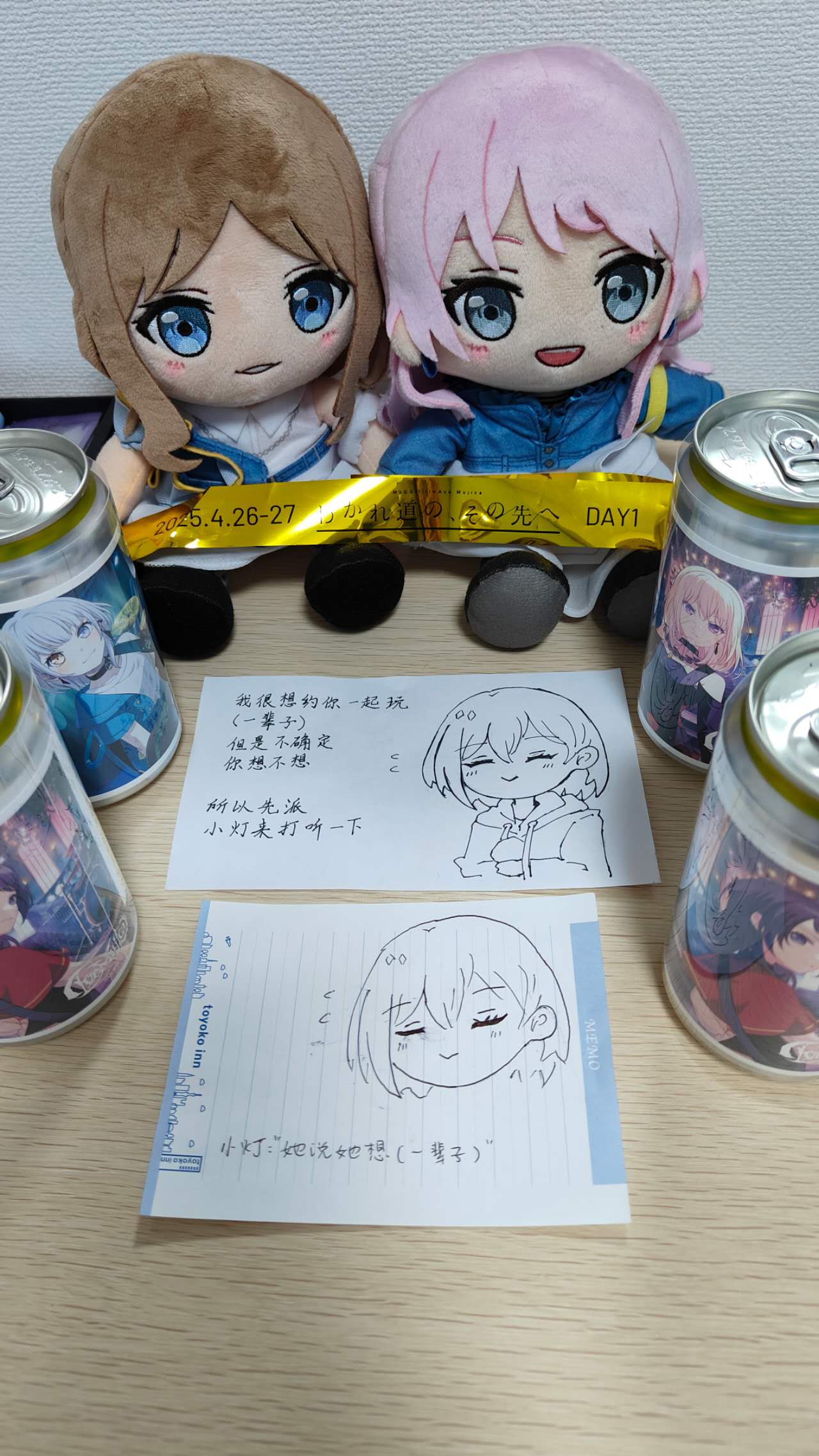 有位观众比乐队更令我着迷,于是我向她送去了思念。因やなぎなぎ而结缘,又因邦邦而靠近,我去年曾觉得缘分尽此,可红线却依然牵连。在我决定送出这封信的时候,我们已经认识半年多,12h 的时差也能成为一件幸福的事,在梦乡中有人为我留言,醒来后逐条回复,光是认知到远在一万公里以外的地方有人惦记就已经是一件无上幸事。恋爱需要一点冲动,无论是否永恒我都应该伸出手。